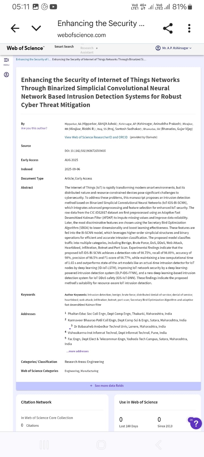 Research paper published in Web of Science Journal Journal of Advanced Manufacturing Systems