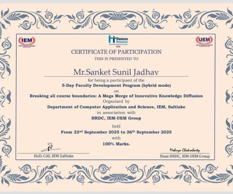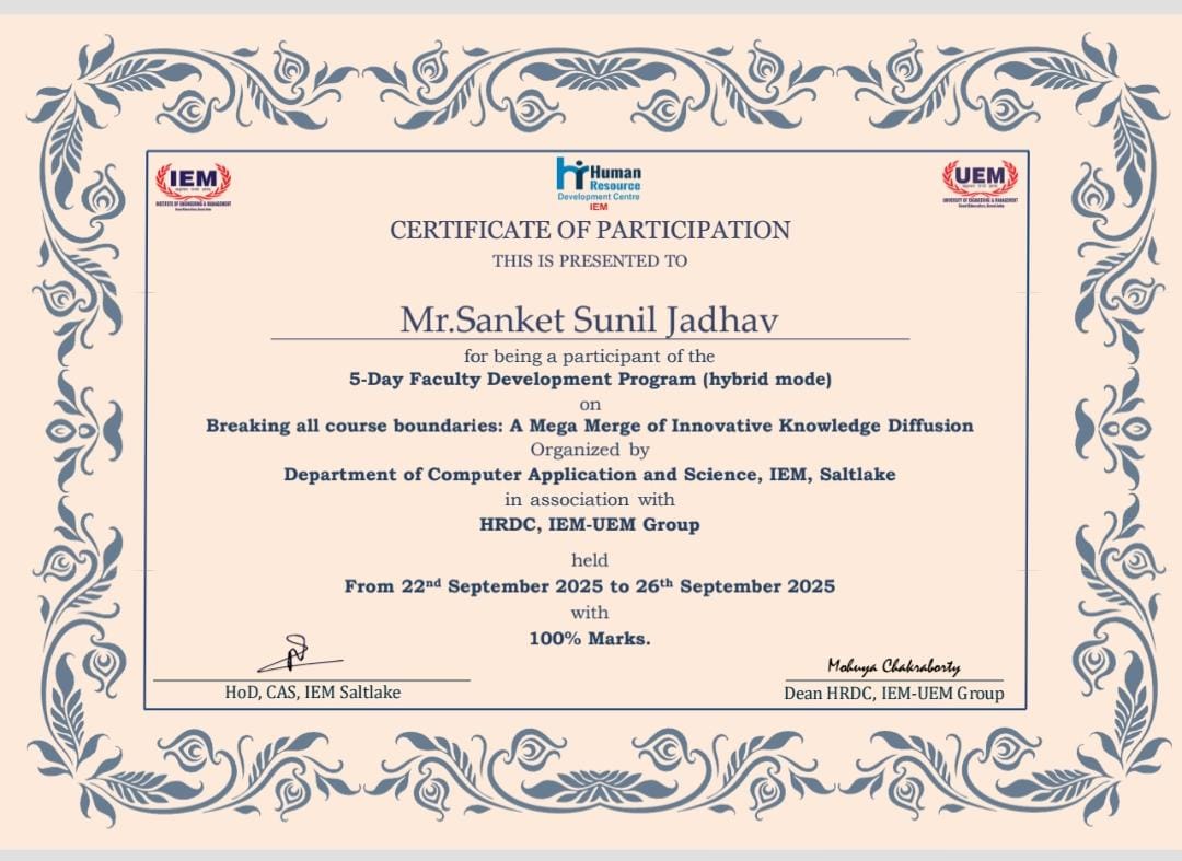 Organized by Department of Computer Application and Science, IEM, Saltlake in association with HRDC, IEM-UEM Group held From 22 September 2025 to 26th September 2025